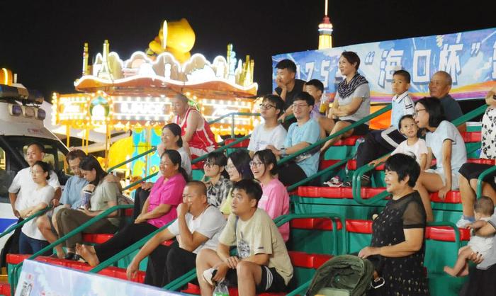 市民李斌下午6点就早早到场等候开赛:“‘海口杯’的氛围太棒了,球员们的拼劲感染了每个人!”在这场体育盛会中,人与人之间的距离被无限拉近。赛场上球员们尽展球技,赛场外更多人开始了解、接触并尊重这项运动,而不再将其视为“年轻人的专属运动”。