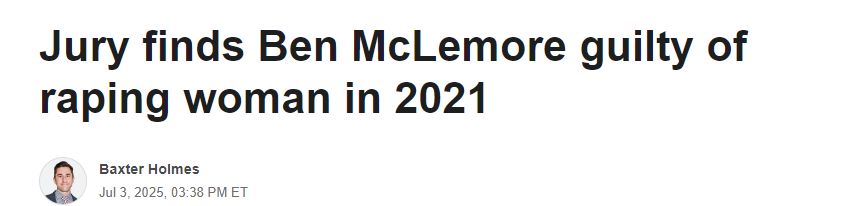 北京时间7月4日,俄勒冈州的一个陪审团周四判定前NBA后卫本-麦克勒莫有罪,罪名是他在2021年效力于波特兰开拓者队期间强奸了一名女性。